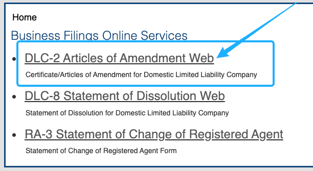 We provide step-by-step instructions on how to file the Certificate of Amendment online. (Technically, you can also file by mail. However, it’s slower and the state prefers online filings.)