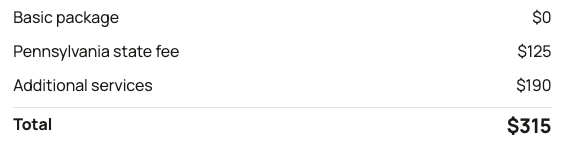 - Premium package ($299 + state fee)