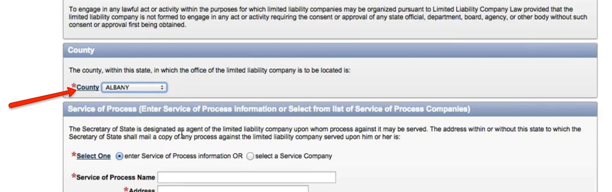 • Hey Jeff, yes, Albany is suggested because it has the most affordable newspaper publication fees. Please see the video on this page for a more comprehensive overview, as there’s too much to write out here. No, it’s no the address where your Registered Agent is located, but rather the county in which the LLC’s office is located (listed in the Articles of Organization as “The county within this state in which the office of the limited liability company is to be located is“). However, it’s in the hiring of a Commercial Registered Agent (located in Albany County) which give you the right to use their county as the county in which your LLC’s office is located (as well as use their address as your Registered Agent address and/or the address for “The address within or without this state to which the Secretary of State