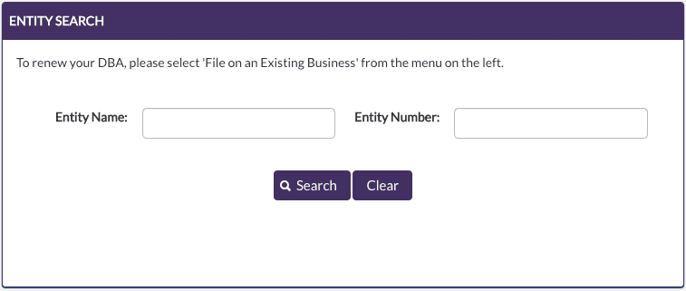 Enter your LLC’s name in the Entity Name field and click “Search”.